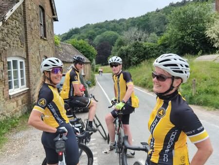 Look at us in our ACC kit! Lovely! Midweekers rode to Abinger Hammer via Leith Hill. Tea Rooms had a new member of staff!! Her first day! And she was under 30!! Shock horror!...